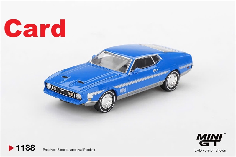 (Pre-Order 4/2026) Mini GT Card Version MGT01138 Ford Mustang Mach 1 Grabber Blue LHD version only